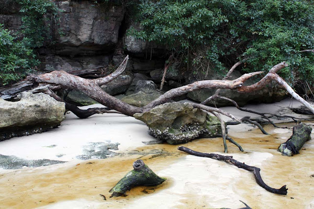 After a short walk on the white sand beach we retrace our steps past this wonky tree back to Tracy's.